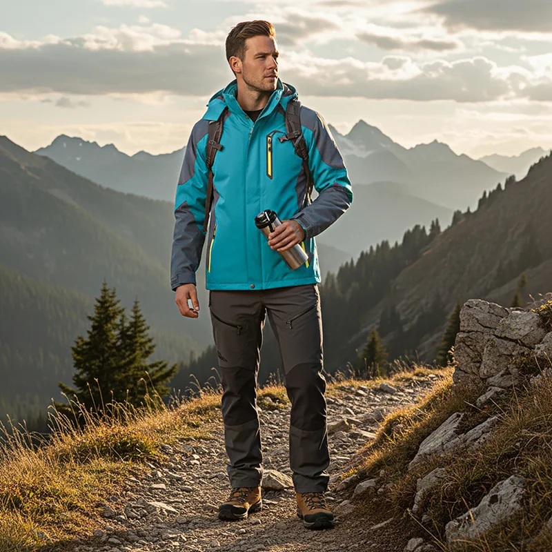 کاپشن کوهنوردی دو پوش مردانه OUTDOOR 1968 A پلاردار گرم آب گریز | سبز/طوسی