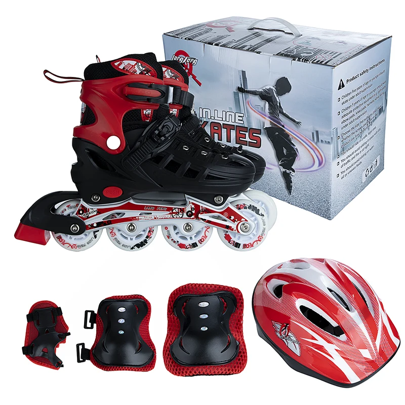 دارای مجموعه کامل لوازم ایمنی ، کلاه ایمنی، محافظ زانو،محافظ آرنج، محافظ مچ