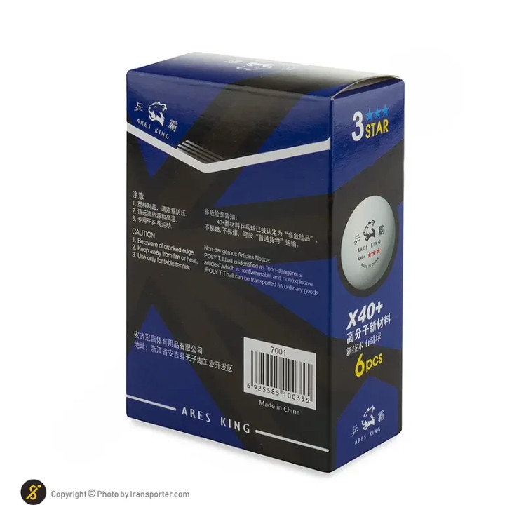 توپ پینگ پنگ 3 ستاره 40 ARES KING 7001 بسته 6 عددی مدل 1